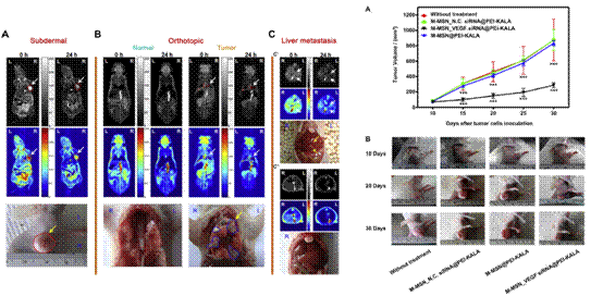 M-MSNs-50是一款单分散磁性介孔氧化硅纳米颗粒(magnetic mesoporous silica nanoparticles),是以超顺磁性径Fe3O4纳米颗粒作为内核,介孔氧化硅作为包覆层的复合纳米颗粒。具有磁核表面介孔层生长均匀完整、复合颗粒粒径分布均一、水分散性良好、超高的比表面积、较窄的孔径分布和大孔容积等优点,生物相容性良好。内部的小粒径Fe3O4纳米核具有超顺磁性,可作为T2造影剂进行MRI成像,亦可在外磁场作用下产生磁热疗效应;外部包覆的介孔氧化硅壳层可装载荧光分子、化疗药物、DNA/siRNA、蛋白等各类客体分子,M-MSNs是具有巨大应用前景的诊疗一体化纳米颗粒平台。