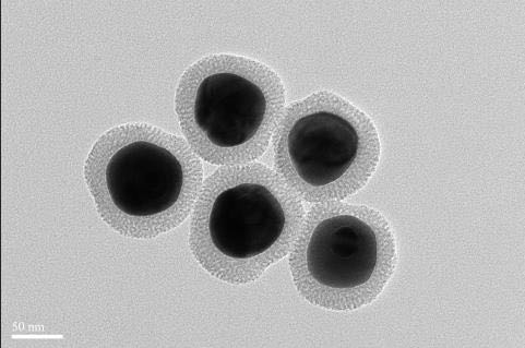 Au-MSNs-90是一款单分散金核介孔氧化硅纳米颗粒,是以Au纳米颗粒作为内核,介孔氧化硅作为包覆层的复合纳米颗粒。具有Au核表面介孔层生长均匀完整、复合颗粒粒径分布均一、水分散性良好、超高的比表面积、较窄的孔径分布和大孔容积等优点,生物相容性良好。内部的Au纳米核作为增强荧光、表面增强拉曼基底;外部包覆的介孔氧化硅壳层可装载荧光分子、抗生素药物等各类客体分子。