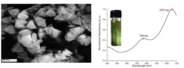 紫外可见光吸收峰: 760 nm 和 1055 nm 处各有一吸收峰