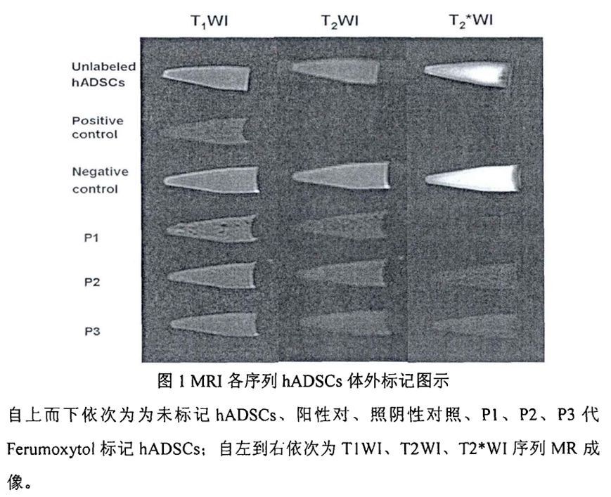 1磁标记hADSCs的体外磁共振成像