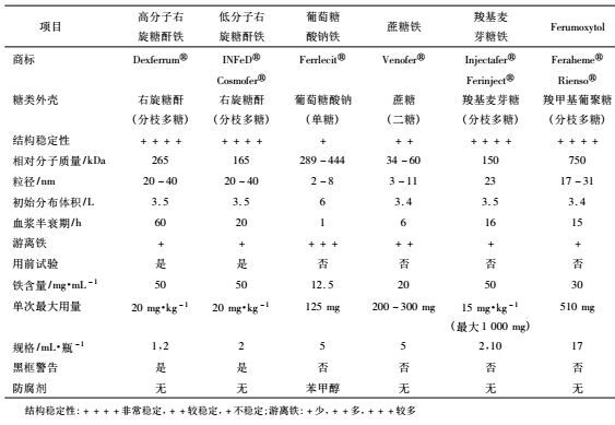 2不同静脉补血剂特性对比总结