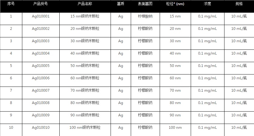 注: 直径*:为银纳米球的直径 【成 分】 银纳米颗粒、超纯水 【用 途】 (1) 银纳米颗粒因其优异的在可见光区的表面等离子激元共振(SPR)的特性,已经在催化、生物和化学传感、非线性光学、表面增强拉曼散射、细胞毒性,抗菌试验,放疗增敏,暗场成像、电子学等多个领域广泛研究和应用。在生物医学领域,由于银纳米颗粒优良的抗菌特性,也成为极具发展潜力的抗菌材料。 (2) 环糊精外缘亲水,内腔疏水,可像酶一样提供一个疏水的结合部位,通过范德华力、疏水相互作用力、分子间的匹配作用等包络各种适当的有机分子、无机离子以及气体分子等。环糊精因其本身有酶模型的特性,在催化、分离、食品以及药物等领域中受到了极大的重视和广泛应用。 (3) 本试剂采用的制备方法绿色友好,具有更好的生物相容性。可进行模拟酶环境下的应用研究,抗菌载药方面的研究以及通过分子识别构建新型生物传感器等。 【特 点】 (1) 本产品具有高比表面积,高负载量,易于表面功能化 (2) 分散性好、稳定性佳 【技术参数 】 图1 15 nm银纳米颗粒紫外-可见光吸收光谱图 图2 15nm银纳米颗粒水动力尺寸图 【贮 藏】 密封,4℃ 冰箱密封避光保存 【有 效 期】 12个月