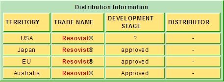 Resovist是一种器官特异性MRI造影剂,用于检测和表征特别小的肝脏局灶性病变,是由包裹有羧基葡聚糖的超顺磁性氧化铁( SPIO )纳米颗粒组成,它们通过吞噬作用在肝脏网状内皮系统( RES )的细胞中积累。Resovist注射液在网状内皮细胞中的摄取导致正常肝实质在T2和T1加权图像上的信号强度降低。大多数恶性肝肿瘤不含RES细胞,因此不摄取铁颗粒。所得到的成像效果是肿瘤(亮)和周围组织(暗)之间的改善的对比度。resovist可以静脉推注的形式注射,这允许立即对肝脏成像并减少总检查时间。团注后的动态成像策略支持病变特征。在全面的临床试验中,它显示出极好的安全性。2001年,Resovist获准进入欧洲市场。