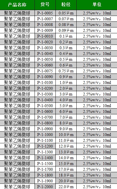 【英文名称】 Monodisperse carboxylate-modified polystyrene microspheres