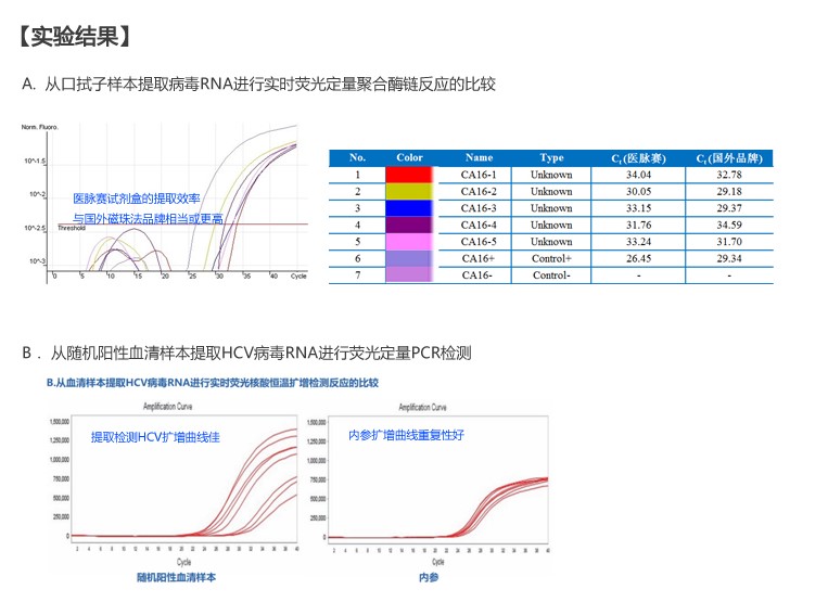 快速: 快速完成病毒RNA提取过程 方便: 无酶消化过程、全程均在室温下进行 环境安全: 不含苯酚,氯仿等有机试剂 自动化适用:为自动化过程精心设计
