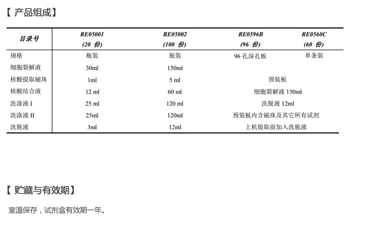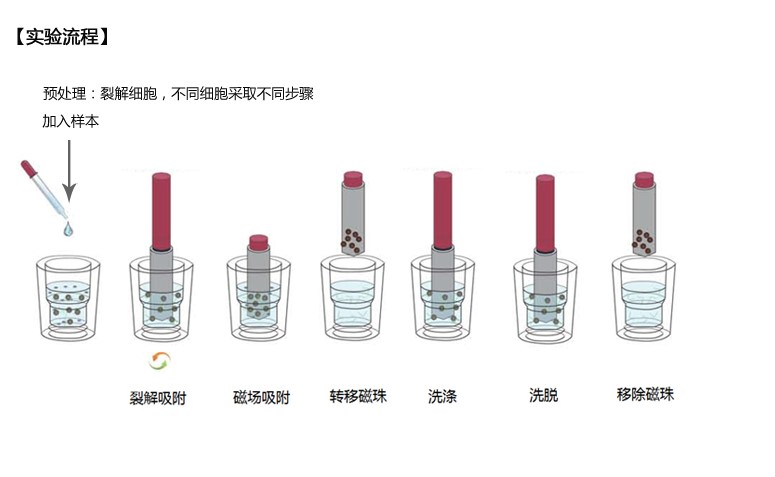 本试剂盒用于提取贴壁培养细胞、 细胞悬液、 血液样本中核酸( RNA)。试剂盒由高效吸附核酸的超顺磁性纳米微球和安全环保的提取试剂体系组成:经过独特的表面修饰的磁珠,结合核酸能力更强、洗脱更容易;操作步骤简单,操作时间短,室温提取过程,适合于快速 RNA 提取的磁珠自动化过程。